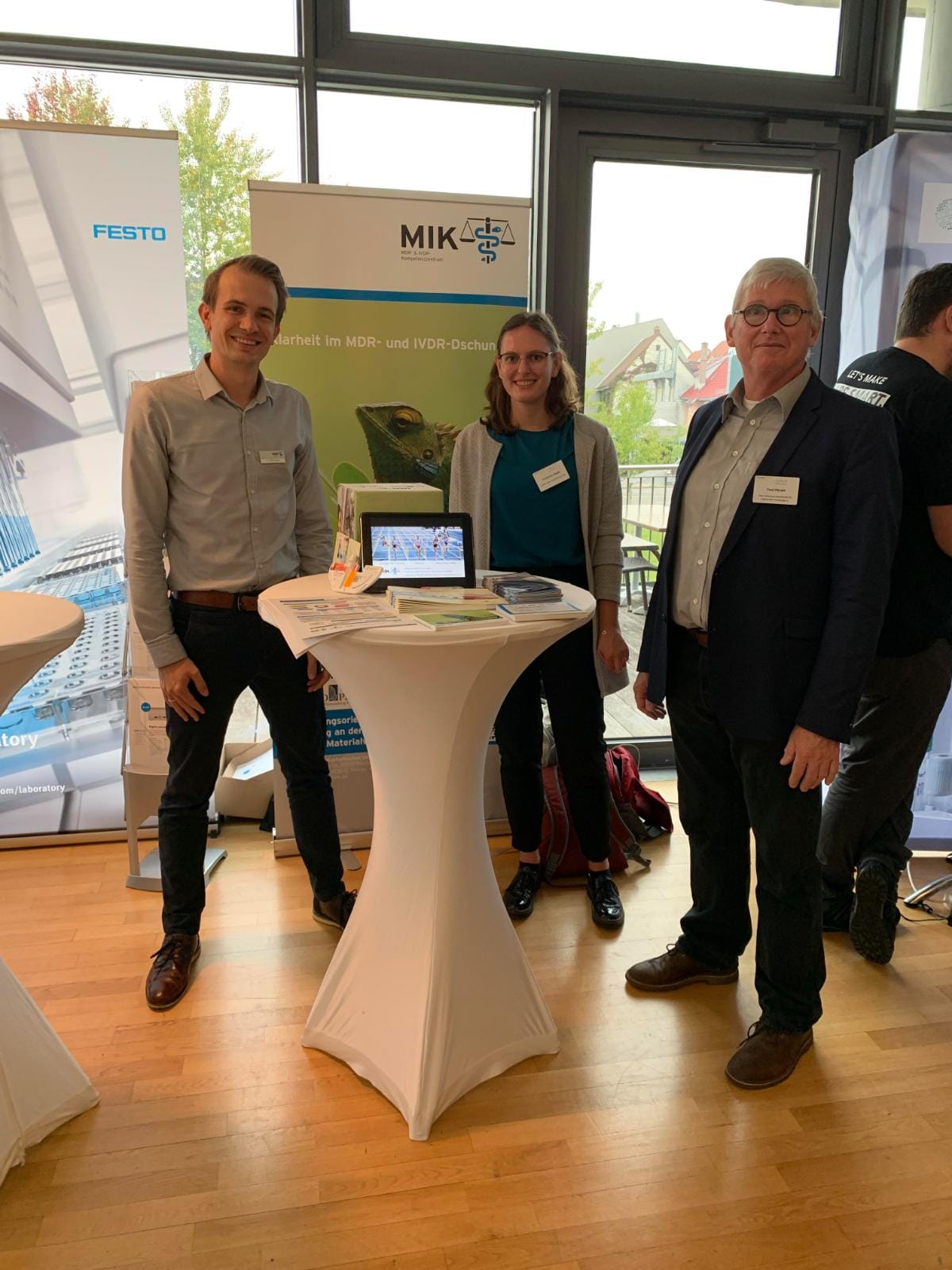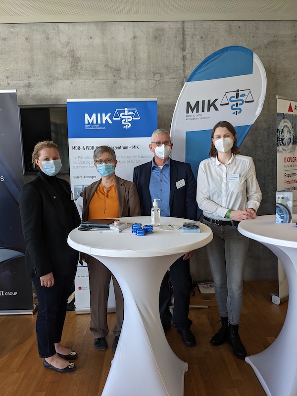 Endlich wieder persönlicher Kontakt mit der Branche!Am 21. Oktober 2021 waren wir mit unserem MIK-Stand das erste Mal auf einer realen Messe vertreten. Gemeinsam mit unseren Kolleginnen und Kollegen Dr. Dagmar Martin und Dr. Pauline Jeckel (NMI), Dr. Natascha Verhagen (BIOPRO Baden-Württemberg), und Fred Obrath (Hahn-Schickard), haben wir unser neues Projekt das MDR- & IVDR-Kompetenzzentrum (MIK) vorgestellt. Wir hatten interessante Gespräche, freuen uns über das große Interesse am MIK und darauf Ihnen bald unsere Dienstleistungsplattform vorzustellen.